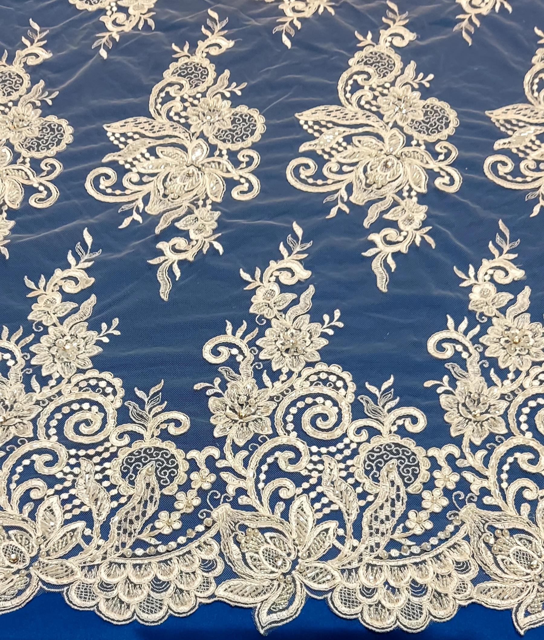 koronka ślubna tkana na tiulu z koderową nitką