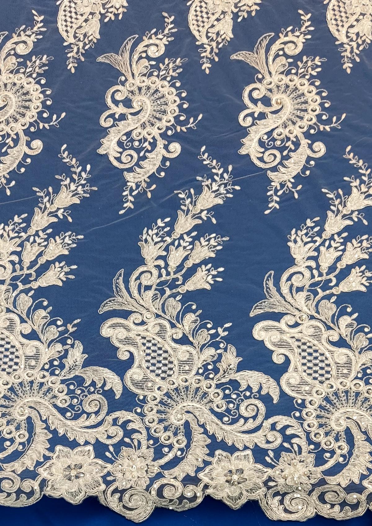 Koronka ślubna,tkana na tiulu z koderową nitką
