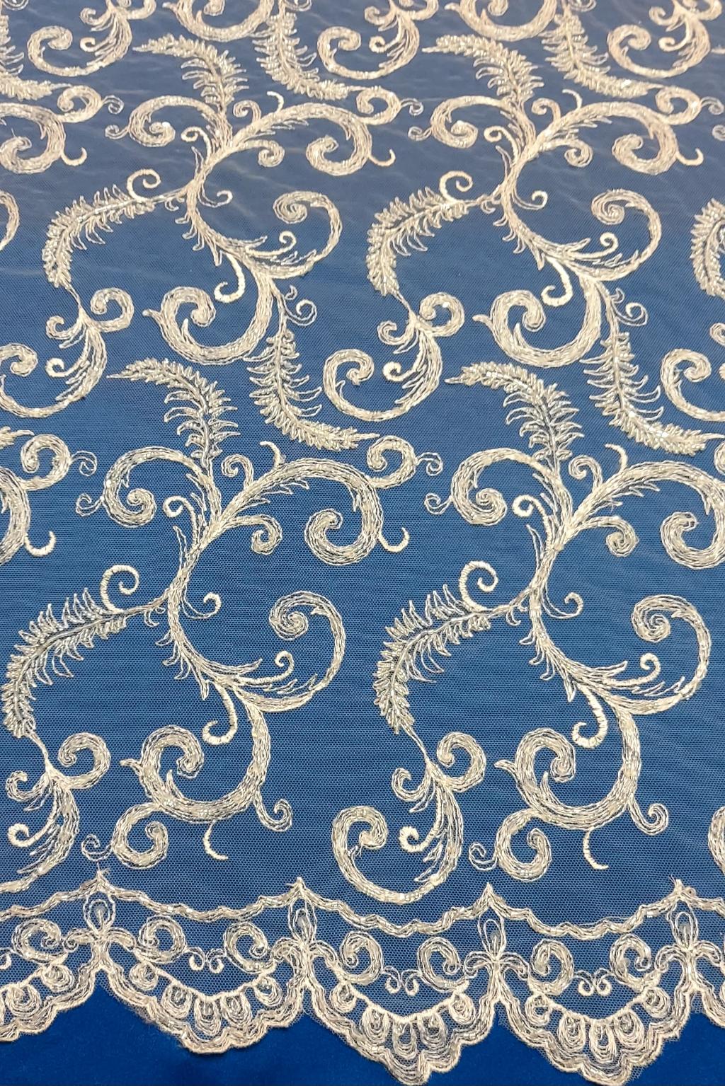 Koronka ślubna ,zdobiona,tkana na tiulu